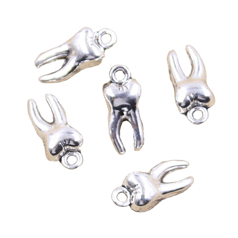 Abalorios molares de dientes de zombi 3D hechos a mano, colgantes de Color plata tibetana Vintage, bricolaje para collar de pulsera 16x8x5MM