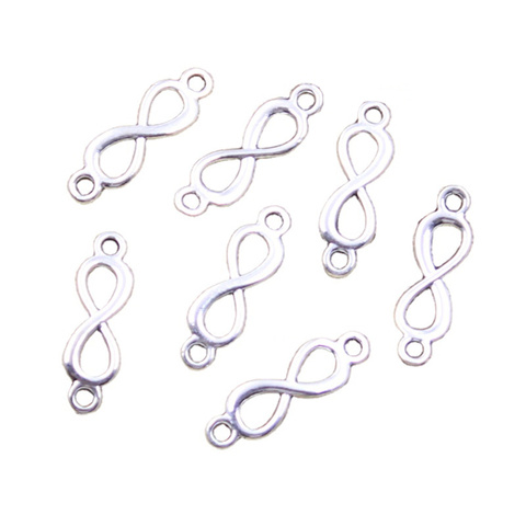 Encantos enlace infinito símbolo conexión 20x6mm tibetano plata Color colgantes joyería antigua fabricación DIY artesanía hecha a mano