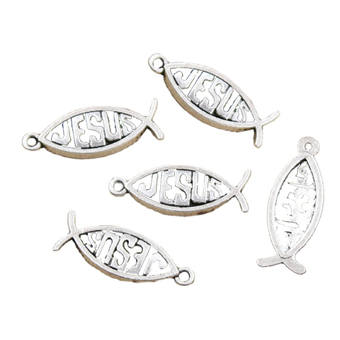 Encantos pez Jesús 27x10mm colgantes de Color plata antigua que hacen DIY joyería tibetana hecha a mano