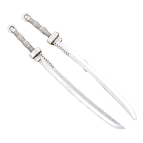 Charms Samurai espada 107x10mm hecho a mano ajuste, colgantes de Color plata tibetana Vintage, DIY para collar de pulsera
