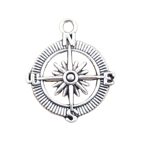 Encantos brújula 28x24mm hecho a mano ajuste, colgantes de Color plata tibetana Vintage, DIY para collar de pulsera