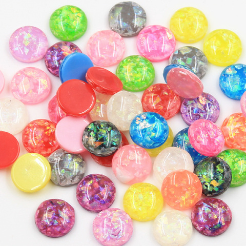 30 unids/lote, 12mm, varios colores mezclados, lámina de Metal incorporada, cabujones de resina con parte posterior plana, cúpula de camafeo para suministros de fabricación de joyas DIY
